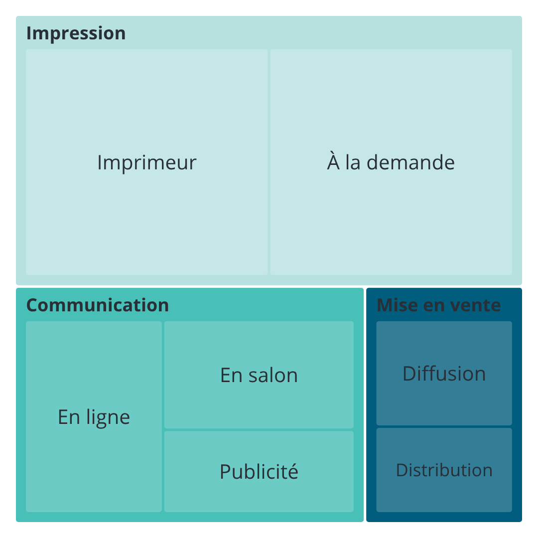 Ces coûts peuvent être extrêmement différents en fonction de tes choix : vas-tu opter pour l'impression à la demande avec une plateforme qui gérera tout (de l'impression à l'expédition au client) ou vas-tu te constituer un stock et gérer toi-même la distribution ?
